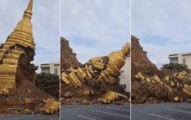 疑因近期強風暴雨影響 清邁銀廟佛塔倒塌