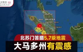 北蘇門答臘遭5.7級地震 大馬多個州屬也震動