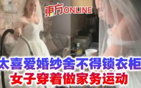 太喜愛婚紗捨不得鎖衣櫃 女子穿著做家務運動