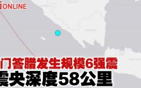 蘇門答臘發生規模6強震 震央深度58公里