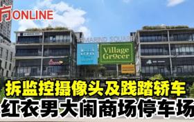 拆監控攝像頭及踐踏轎車 紅衣男大鬧商場停車場