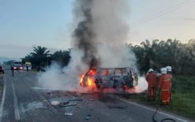 客貨車與本田轎車相撞起火燃燒 女司機及時被救出車