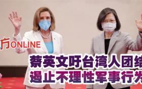 蔡英文吁台灣人團結 遏止不理性軍事行為