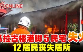 瓜拉古樓港腳5民宅失火 12名居民喪失居所