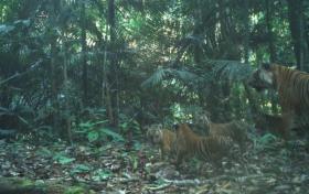 受保護森林隱藏鏡頭捕獲 野生虎媽媽與4虎崽同行