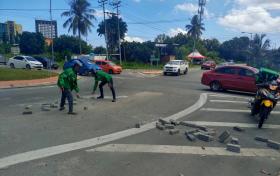 磚塊從羅厘散下車道 送餐員助清理獲贊