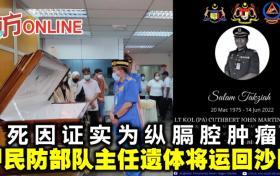 死因證實為縱膈腔腫瘤 甲民防部隊主任遺體將運回沙巴
