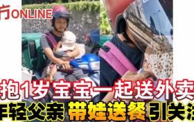 抱1歲寶寶一起送外賣 年輕父親帶娃送餐引關注