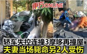 轎車失控連撞3摩哆再撞屋 夫妻當場斃命另2人受傷