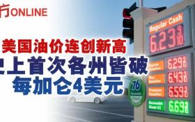 美國油價連創新高 史上首次各州皆破每加侖4美元