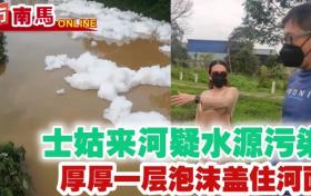 士姑來河疑水源污染 厚厚一層泡沫蓋住河面