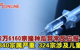 接2萬6160宗接種後異常反應報告 1840宗屬嚴重、324宗涉及兒童