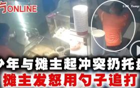 少年與攤主起衝突扔托盤 攤主發怒用勺子追打