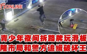青少年夜間拆路牌玩滑板 隆市局和警方追緝破壞王