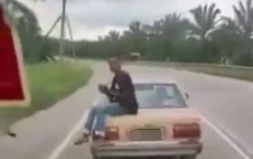 玩命男子危坐後車蓋 網民跟拍攝下「特技表演」