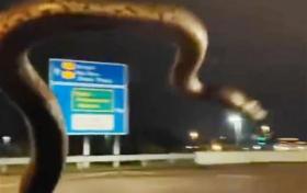 行駛中擋風鏡突冒出大蟒蛇 車主狂奔到賽城消拯局求助