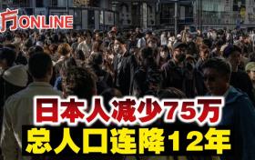 日本人減少75萬 總人口連降12年