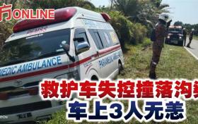救護車失控撞落溝渠 車上3人無恙