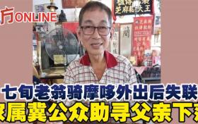 七旬老翁騎摩哆外出後失聯 家屬冀公眾助尋父親下落