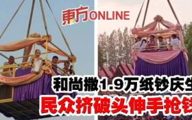 和尚撒1.9萬紙鈔慶生 民眾擠破頭伸手搶錢
