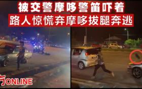 被交警摩哆警笛嚇著 路人驚慌棄摩哆拔腿奔逃