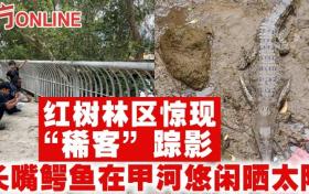 紅樹林區驚現「稀客」蹤影 長嘴鱷魚在甲河悠閒曬太陽