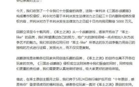 法院判《三國志戰略版》著作侵權:賠償網易5000萬元