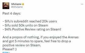 《師父》登Steam四天銷量破5萬份 好評率高達94%