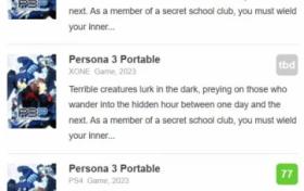 《P3P》M站媒體評分解禁:XSX版最高、PS4版最低