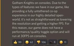 《哥譚騎士》主機版僅支持30幀 遊戲無性能模式