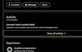 B社圖形程序師領英顯示:《星空》支持光追技術